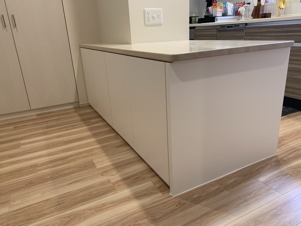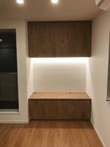 既存のテーブルにパイプの足が付いている状態をスッキリ収納棚にしました!