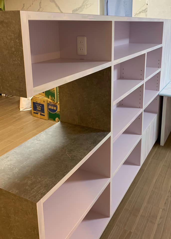 間仕切りとして壁を繋いだ収納棚を製作しました!